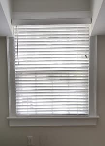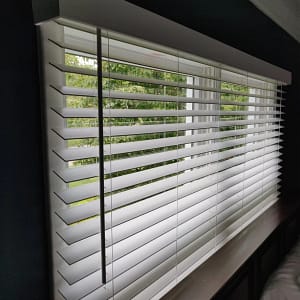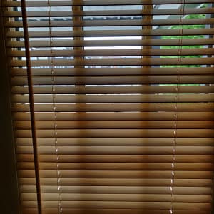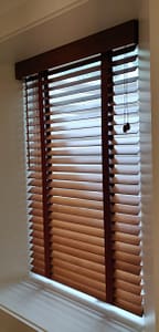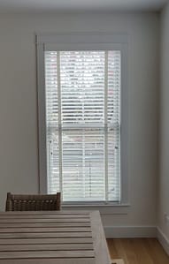 AKA Venetian blinds, these are a great classic look and probably the best value compared to other options. We offer horizontal blinds in real wood, faux wood, and aluminum. Wooden blinds feature a number of horizontal slats linked together by a cord pulley system. When lowered and rotated, wooden blinds obscure outside views and block all sunlight.