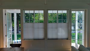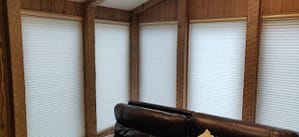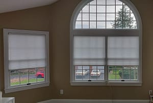 Cellular shades fold up along crisp pleats. They come in a variety of pleat sizes, colors, and light control options, ranging from sheer to blackout. While doing all that, they provide the highest level of insulation due to their honeycomb-shaped air pockets, or cells.